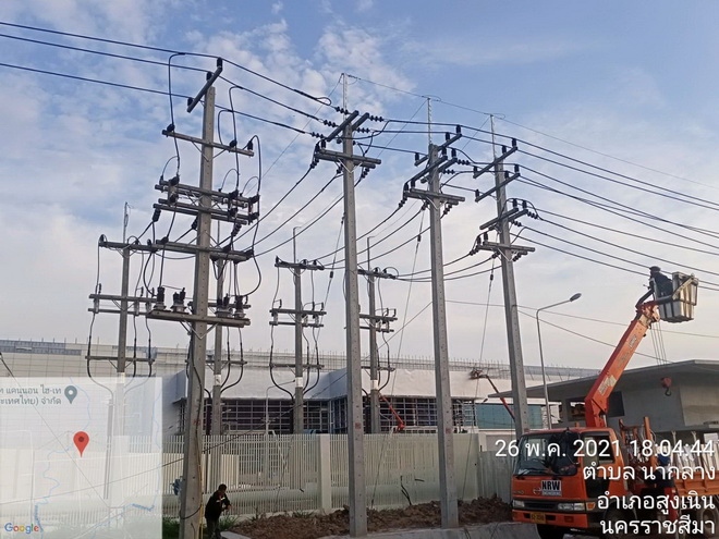 งานก่อสร้างระบบจำหน่ายไฟฟ้าแรงดัน 22 เควี ให้กับบริษัท AVX Thailand Limited ภายในเขตประกอบการอุตสาหกรรมนวนคร จังหวัดนครราชสีมา